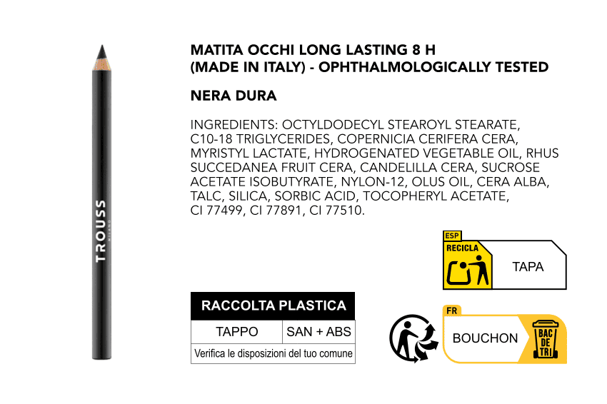 Trouss Milano ha un’identità Made in Italy: i nostro cosmetici sono prodotti in Italia. Ogni informazione è presente sul packaging, come da normative vigenti.