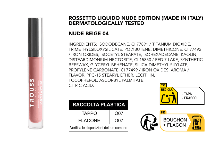 Trouss Milano ha un’identità Made in Italy: i nostro cosmetici sono prodotti in Italia. Ogni informazione è presente sul packaging, come da normative vigenti.